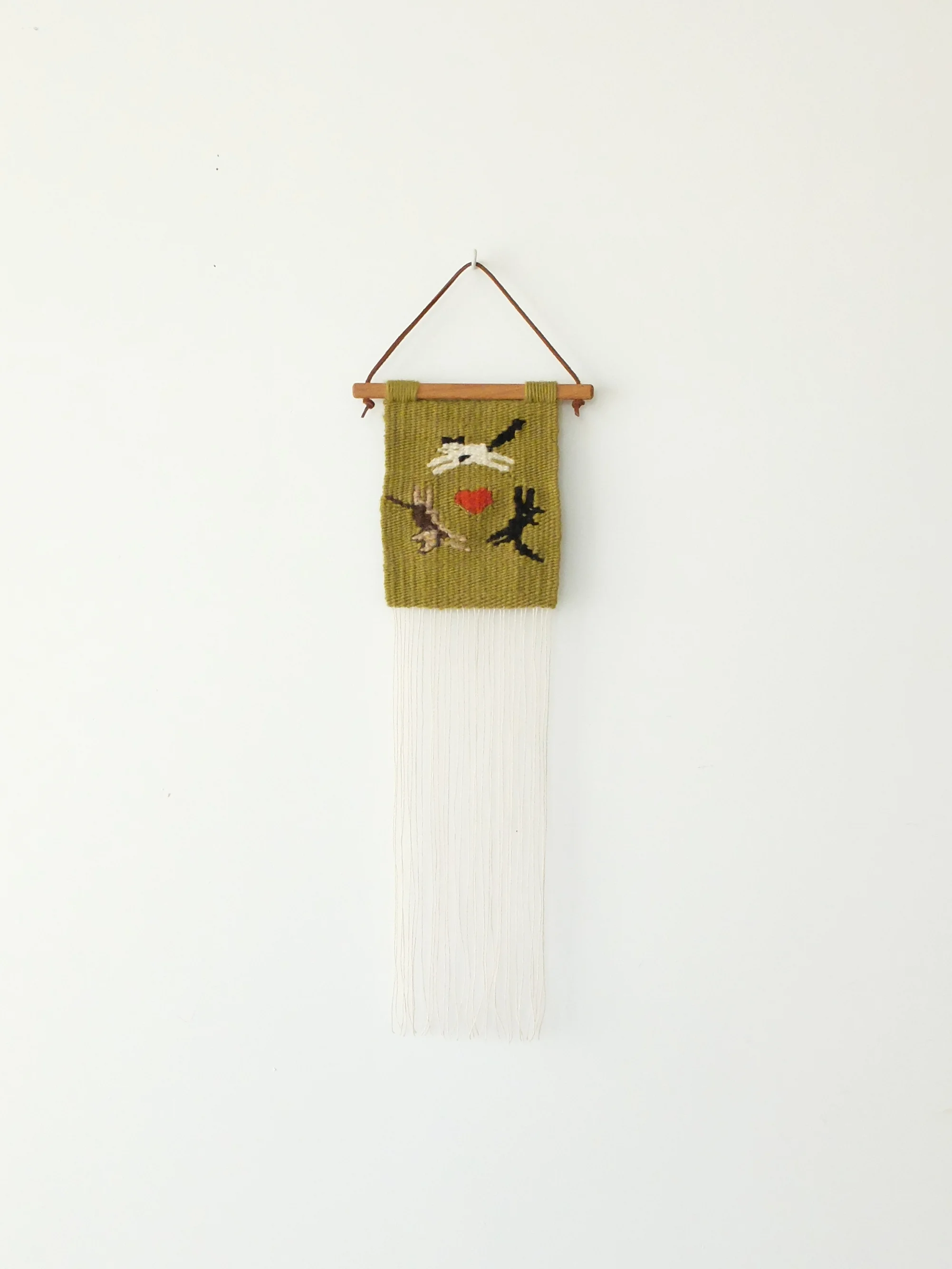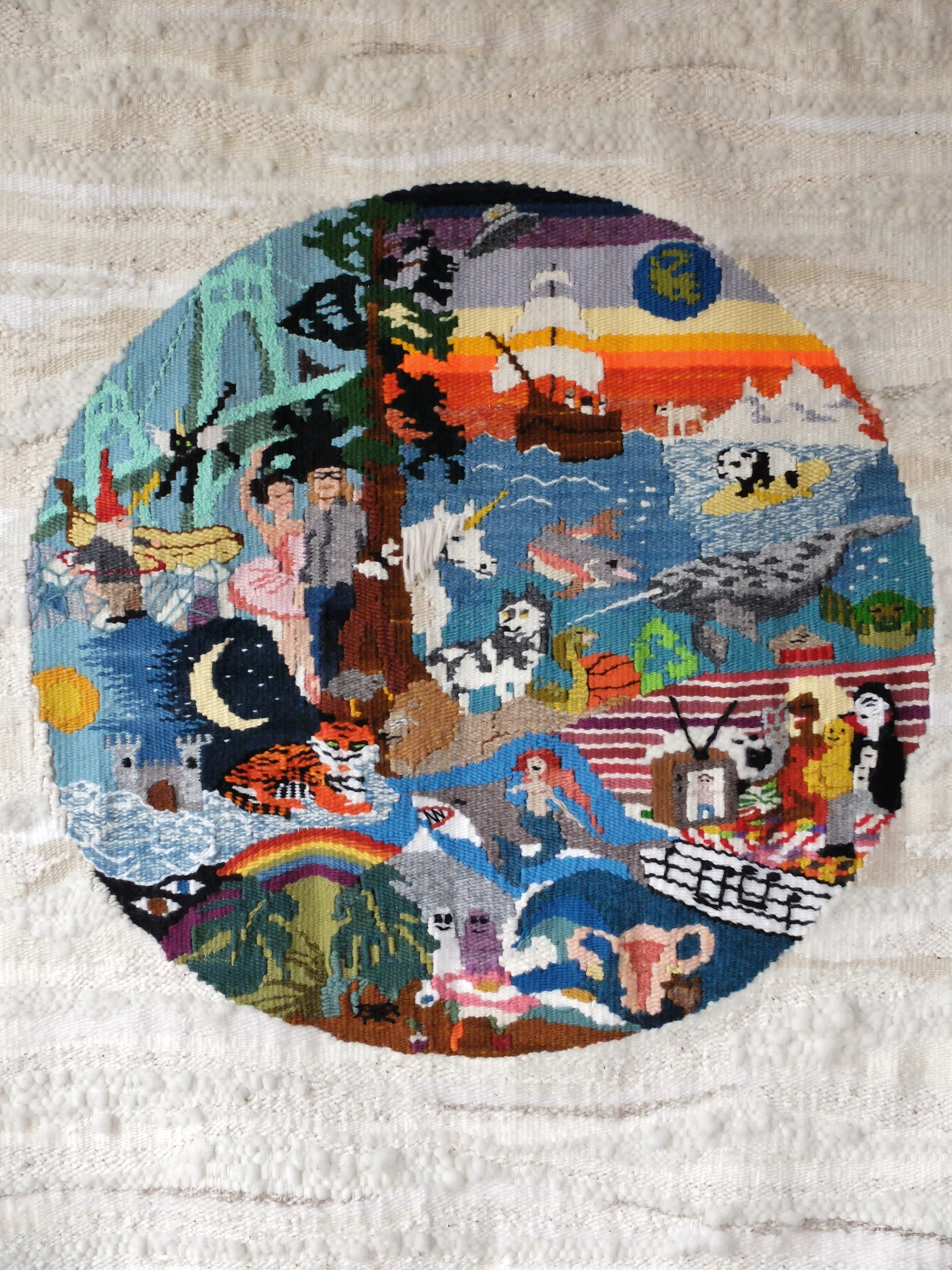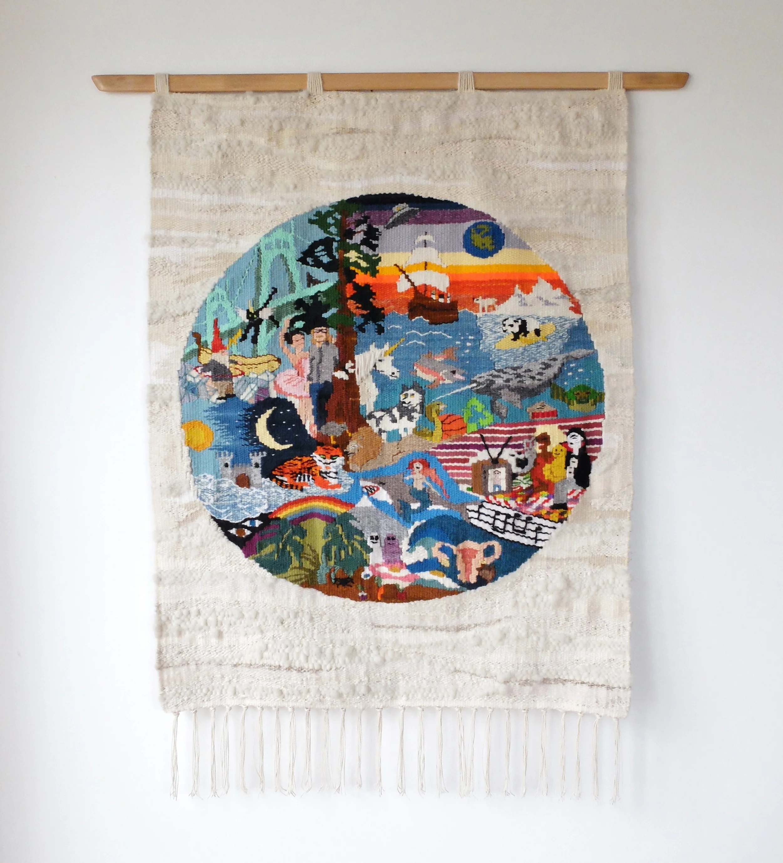 This series of weaving is based on the major arcana of the tarot. While exploring the tarot on a personal level I both deepened my understanding of the deck and created my own interpretation in a visual format. I made new images for the first 21 cards, but the final piece in the series is "The World" so I reached out to the community and asked them to contribute ideas for the 22nd card. I ended up weaving suggestions from almost 100 people into one larger, cohesive tapestry. You can follow that process as it unfolded on my instagram feed @combedthunder.